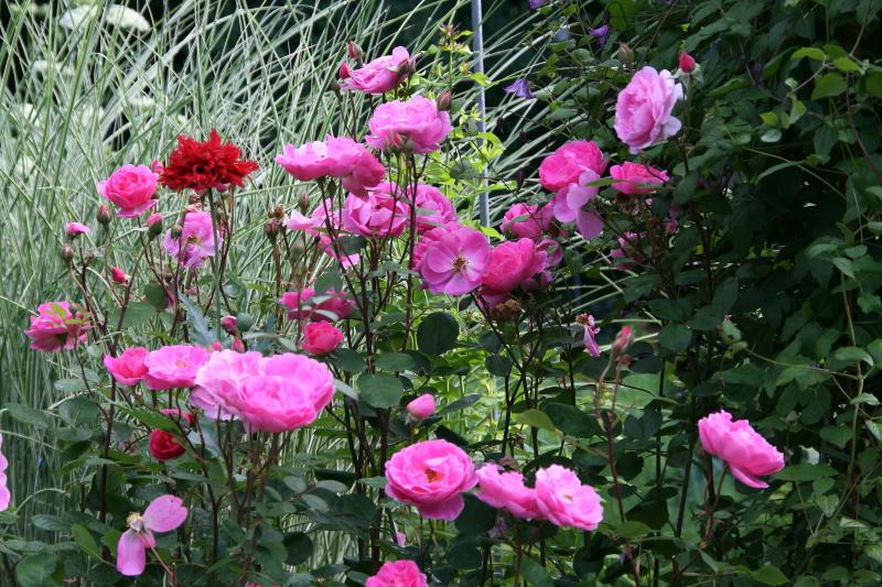 Ich weiß nicht mehr genau, ob die Alfred Colomb eine Austin Rose ist, das ist die rechte dunkle Rose ? Das wars jetzt. Mehr Bilder von den Austins habe ich nicht.