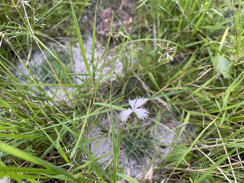mal sehen, ob sich die diversen kürzlich ausgewilderten nelken in dem im letzten jahr zur wiese deklarierten ehemaligen rasen durchsetzen können. erstmal gibt es noch ein halbwegs als nelke erkennbares blütchen.