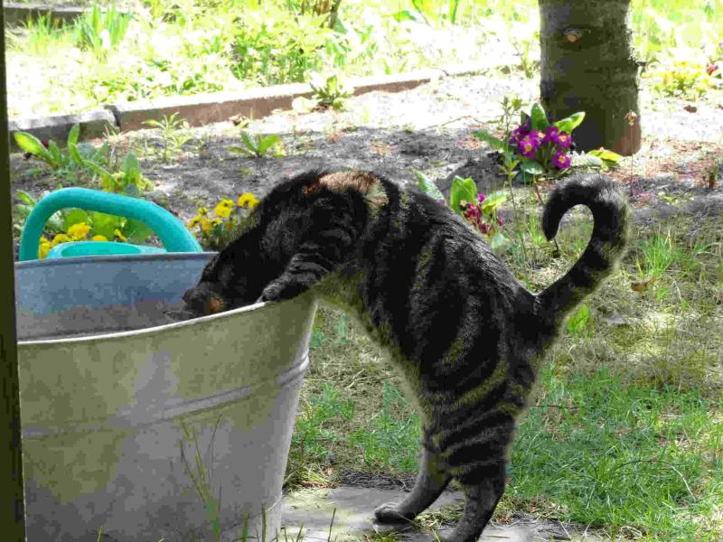 Bei unserer Liese muss es Regenwasser sein. Drinnen steht ein Eimer für sie in der Dusche und draussen, na ja, ihr seht ja selbst.