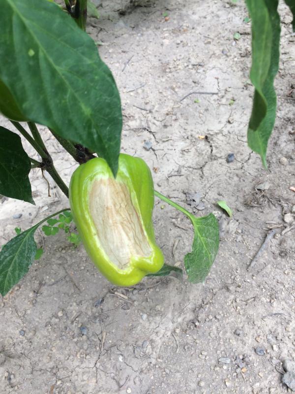 keine ahnung welcher schaden das am neusiedler paprika sein könnte. sonnenbrand? ....ich habe nicht mit sonnenschutz eingeschmiert ;D