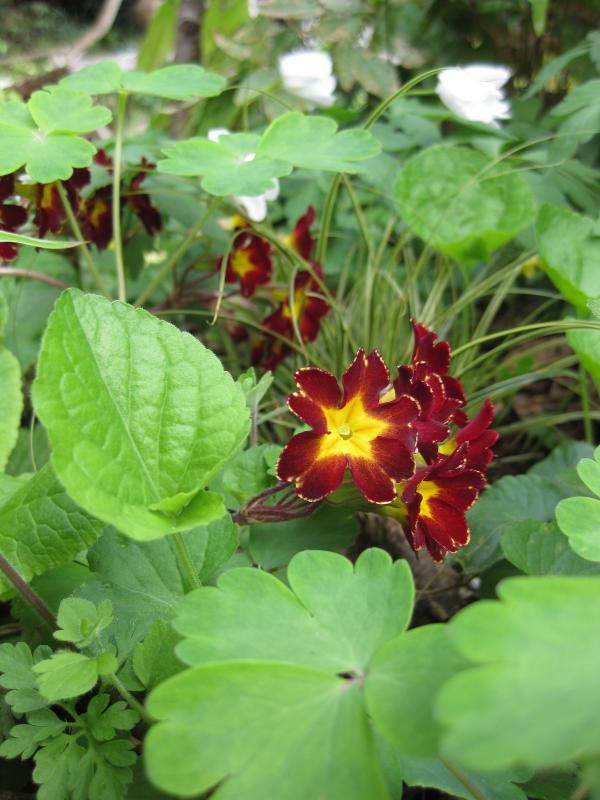Hier blüht ein hübscher Abkömmling einer 'Gold Laced' Primel, die sich nicht lange gehalten hat, ebenso wie andere edle Sorten, die dort noch standen.