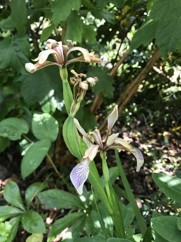 Danach könnte es sich um Abkömmlinge von Iris foetidissima var. lutescens handeln, die Ursprungspflanze soll 1930 in Marocco gefunden worden sein und die Früchte sollen orange und nicht Korallenrot sein.