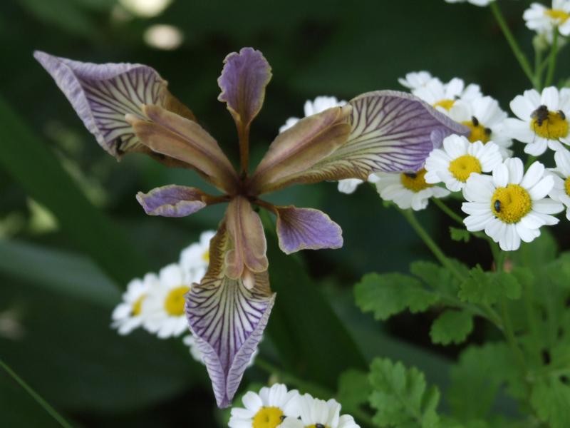 Ja, die breiten Hängeblätter sind sehr attraktiv. Meine aus der Vendée mitgebrachte Pflanze und ihre Nachkommen haben bläuliche Blüten, leider sind die recht schmalen Hängeblätter an den Seiten auch noch hochgerollt. Die Blüte ähnelt der meiner panaschierten Form, die Pflanzen sind aber in allen Teilen größer.