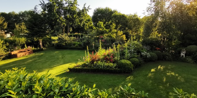 Im Spätsommer gibt es eine Zeit, da ist alles wild durcheinander gewachsen. Es ist so heiß, dass es man nur kurze Zeit gärtnern kann. Die Pflanzen sind von Schnecken angeknabbert oder abgeknabbert, die Hitzeschäden zeigen sich ... Trotzdem ist es so wunderbar ihn zu haben den Garten. Ganz früh ist alles feucht und die Farben leuchten und man macht Pläne was wo hin soll, was zu den vorherrschenden Bedingungen besser passt. Empfehlen kann ich die Rose ‚Stanwell Perpetual‘ - ein Stachelmonster, aber gut duftend, dicht gefüllt, zartrosa, remontierend, schnittverträglich und gesund.