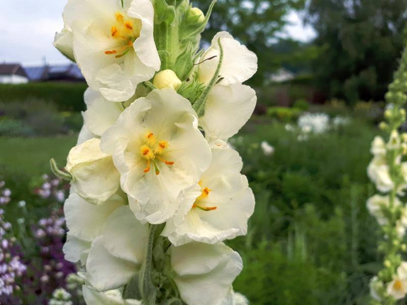 Hier hat sich die weiß blühende Königskerze Verbascum blattaria f. albiflorum seit eingen Jahren etabliert.