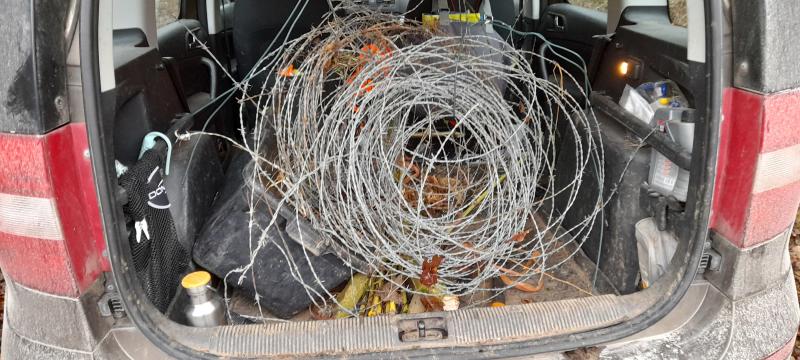 Also nicht dass jemand glaubt, dies wäre der ganze Draht. Aber den in ein normales Auto zu bekommen ist gräßlich. Das geht nur in Etappen Im Pickup liegen aber immer Netze. Die alle ausräumen... no thanks. Der hat nicht meine Arbeitshöhe.
