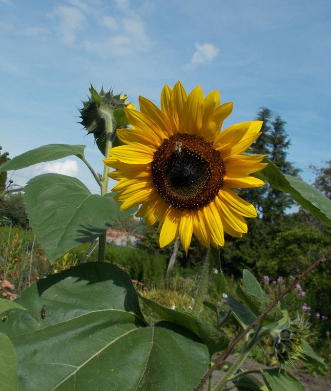Helianthus annuus, Zufallssämling, irgendwie den Schneckenfraßdruck überlebt habend :D
