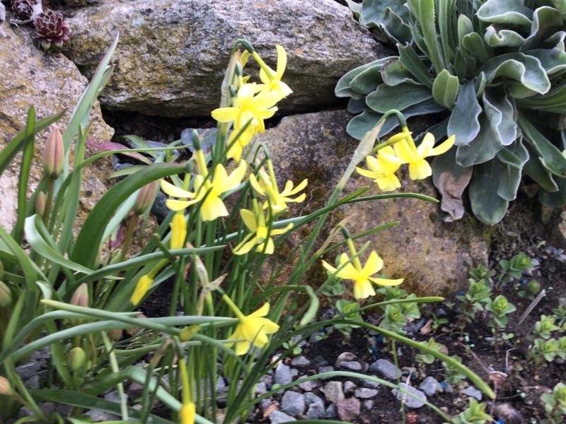 N. triandrus blüht jetzt. Dieses Jahr etwa eine Woche früher als sonst. Sie ist gut für Sommertrockene Plätze geeignet. Die Blüte ist reingelb, durch Handyfoto etwas verfälscht