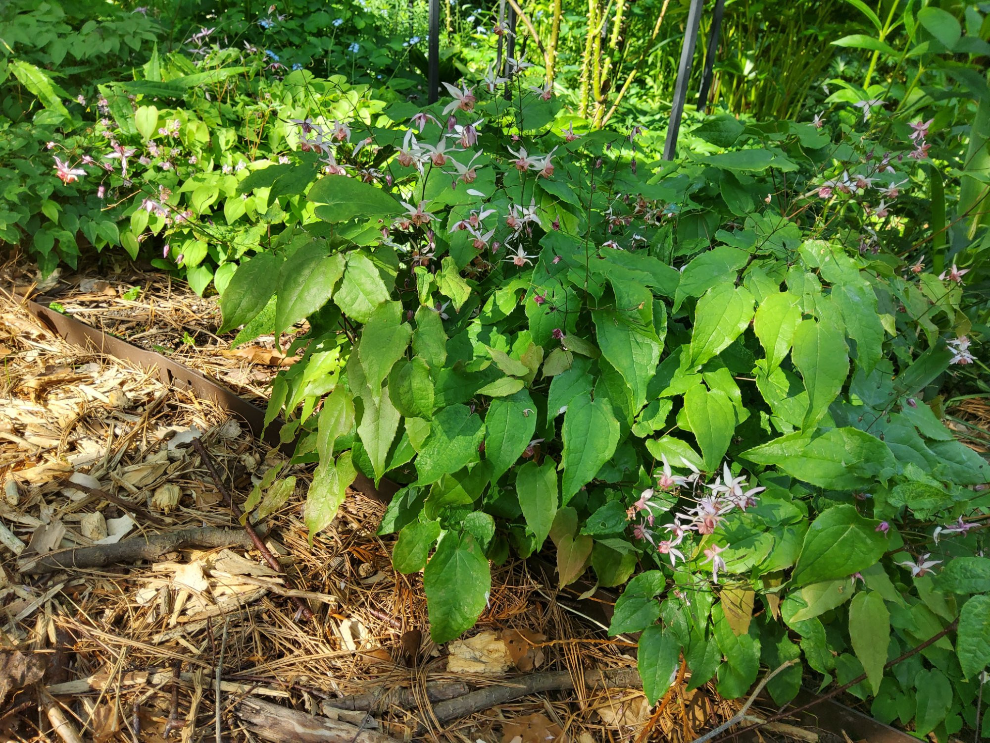 Das Epimedium habe ich in einem Gartencenter als ‚Amber Yellow‘ nach der Blüte gekauft. Es hat Ähnlichkeit mit ‚Caramel‘. Ich glaube aber nicht, dass diese Sorte in einem Gartencenter angeboten wird.