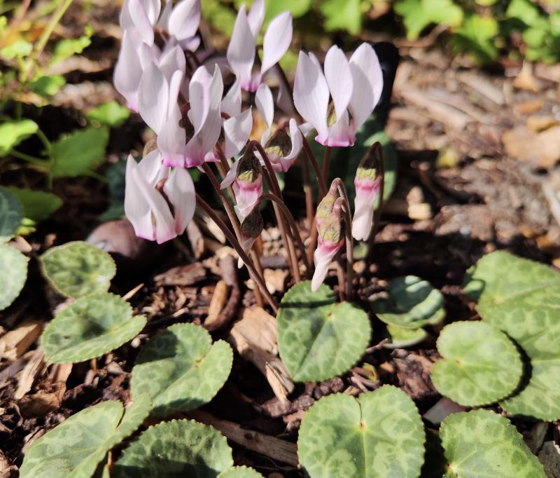 Nox, beim Lord blühen die Cyclamen purpurascens. Die sind mit dem Laub deutlich weiter (meistens). Hier eins vom Lord, das bei mir blüht.