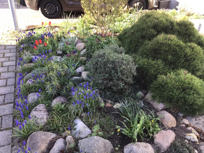 Der Vorgarten mit vielen Muscari und andrem