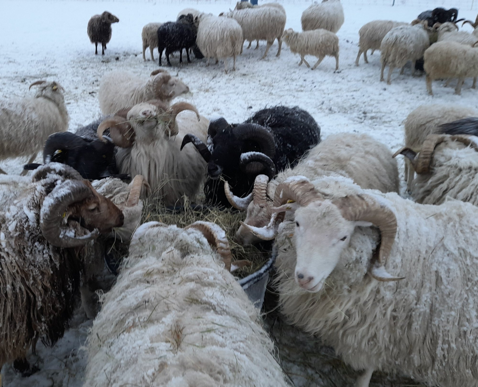 Heute wird es etwas verschärft. Es schneit. Und mein Mann hat heute morgen eine kleine OP. Also früh los, alle versorgen. Gut, dass wir noch einen Wwoofer haben, der uns unterstützt.
