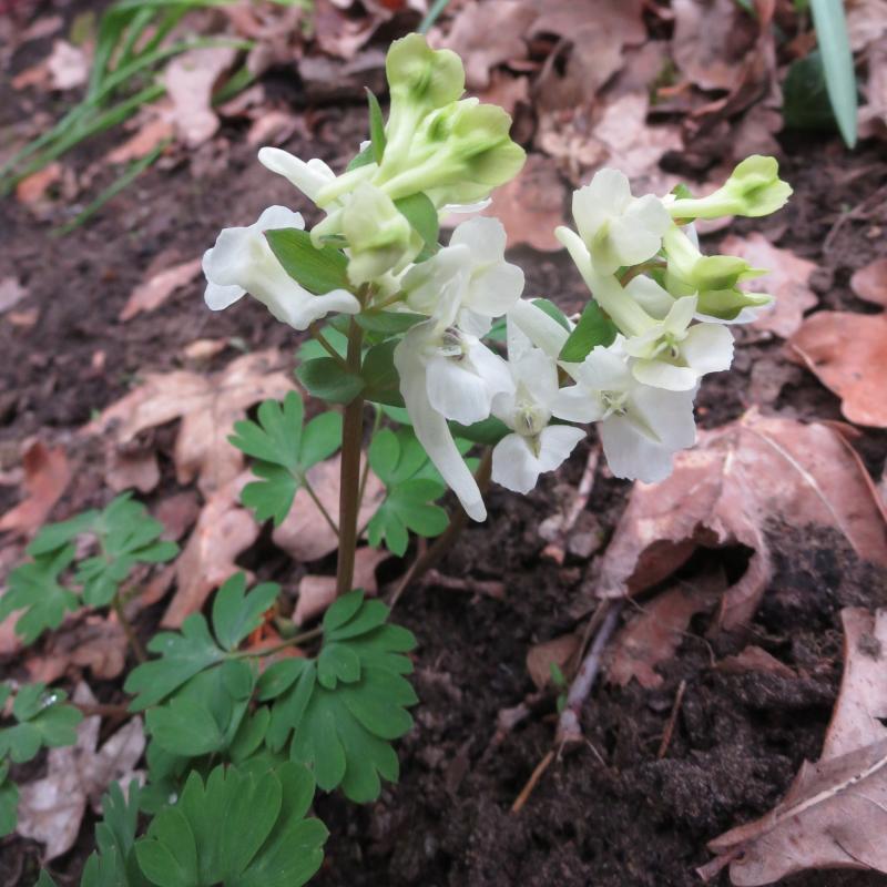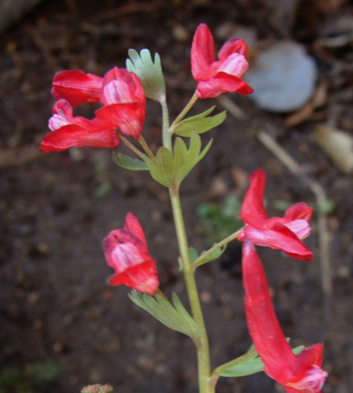 und gleich daneben Corydalis 'Craigton Red'. Corydalis solida "White Knight" braucht noch einige Zeit bis zur Blüte.