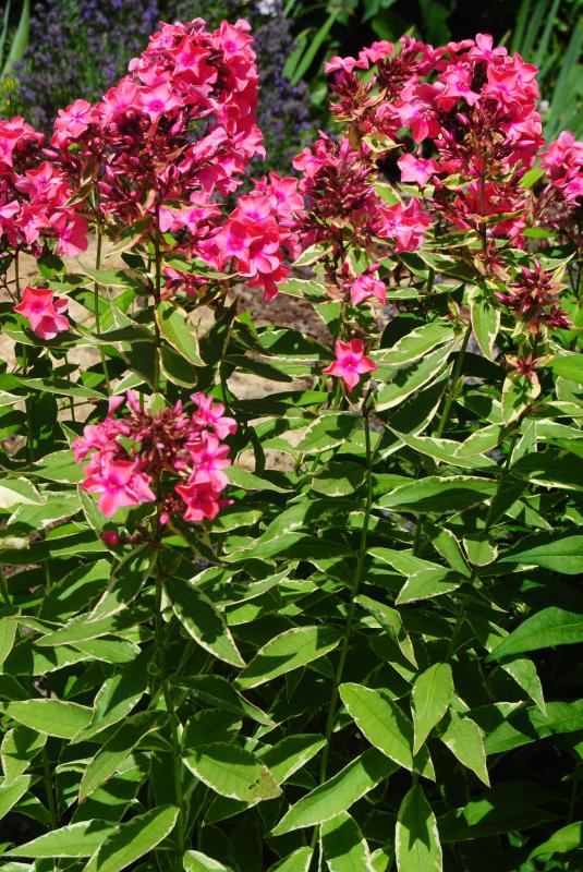 'Professor Went' (Ruys 1925)Zu diesem Phlox sagte der Züchter, dass er "so gut wie nicht" verbrennt und die Farbe gut hält. Hier steht er vollsonnig und verbrennt nicht.