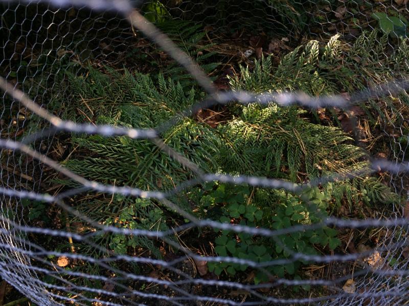 Bei dem neuen Farn-, Cyclamen-, Hepatica- und HostaBeet habe ich den kalkigen Lehm und Schotter oberflächlich mit einigen Schubkarren voll abgelagertem/angerottetem Schreddermaterial aus Fichte und Weisstanne und etwas Kompost aufgebessert. Nach dem Einpflanzen kommt zum Winter hin noch eine lockere Mulchschicht aus diesjährigem geschreddertem Laubgehölz drauf.