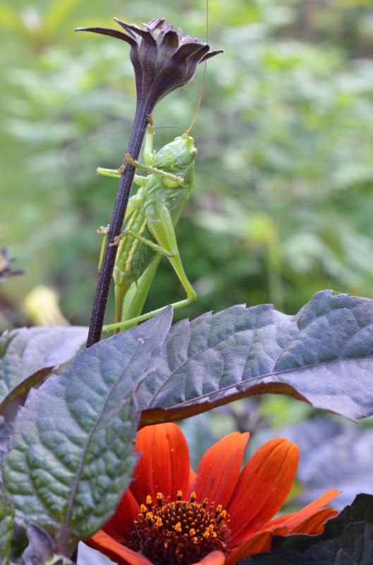 Hier turnt aber auch ein grünes Ungeheuer auf einer Blüte herum!