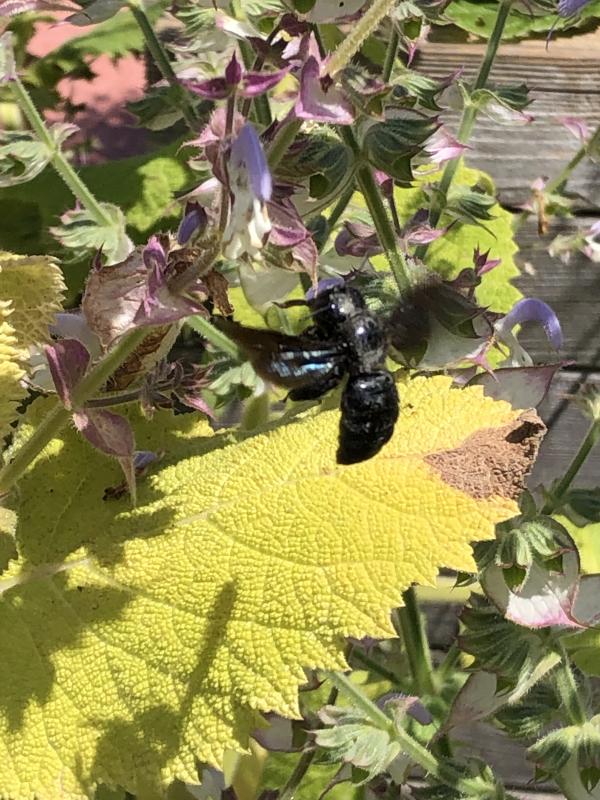 Macht nichts, hier mein allererster Muskatellersalbei mit blauer Holzbiene….