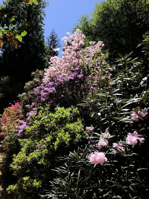 Rhodos sind ja eigentlich Charaktergehölze, mir gefällt es gut, wenn sie transparent sind, Stamm zeigen und Platz für Schattenstauden bieten.