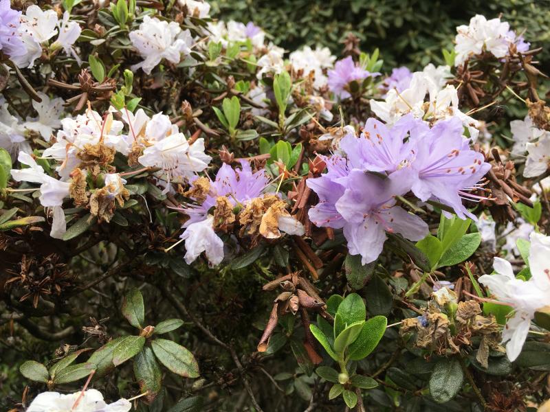betrifft das nur lepidote oder auch elepidote Rhododendron? Warum schließt du Ovulinia azaleae völlig aus? Okay, bei der derzeitigen trockenen Witterung ist dies zwar unwahrscheinlich aber nicht unmöglich. Es sieht ja irgendwie so aus, als ob die blasseren Blüten bereits verblüht oder am Verblühen sind. Waren die anfangs dunkler oder sofort so hell? Insbesondere an Rh. concinnum und an einigen japanischen Azaleen beobachte ich bisweilen ähnliche Effekte, allerdings nicht so ausgeprägt.