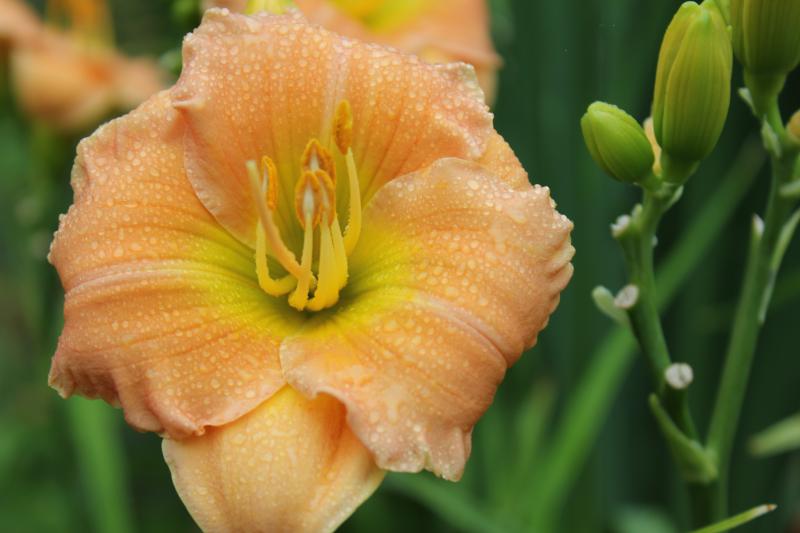 richtig gut wirds (nur) mit bewässerungssystem, oder wirklich aufopferungsvollem gießen über stunden fast täglich.Vergiss es, Nahila, soviel hättest du gar nicht wässern können, um das trockenheitsbedingte Wasserdefizit im Sandboden auszugleichen. Das habe ich hier ja mehr oder weniger konsequent versucht und bin gescheitert. Und so ist es nun, wie es ist, wenig Stiele, kurze Stiele, aber teils unglaublich dicke Fächer. Und wenn ich auf eine Tagesausbeute von 10 Blüten komme, muss ich mich schon gut beschenkt fühlen.Ich hoffe auf den ultimativen Blütensegen im nächsten Jahr.Der gesamte Zweitgarten ist extrem spät dran (normal ist hier Anfang Juli die Hauptblüte durch) und die Stengel an vielen Sorten kurz - ich hätte im Frühjahr halt doch mal wässern sollen