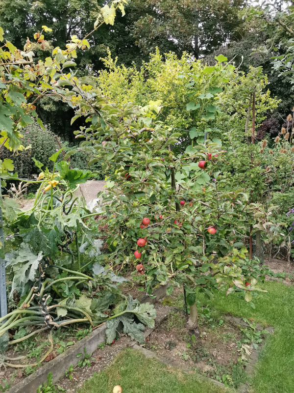 Bei mir war letztes Jahr was am Rebenspalier frei, da große, alte Traube raus und kleine neue rein, das hatte einfach gepasst. Zucchini ist ein typischer Vertreter von Gemüse, wofür es kein eigenes Beet braucht sondern irgendwo zwischenreingequetscht werden kann.