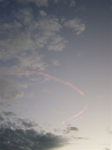 Hier war kurz vor Sonnenuntergang wieder eine Rabenwolke am Himmel. Das Foto ist zwar s...schlecht (da bräuchte man eine bessere Kamera), aber ich möchte es euch nicht vorenthalten.@ Nina, ich finde es toll, daß du deinen Wohnort dazu schreibst. Ich wäre des öfteren froh, wenn er wenigstens im Profil stünde.