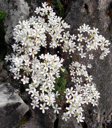 Mein schönster Silberrosettensteinbrech ist dieser hier. Ich habe ihn vor vielen Jahren mal von Sündermann unter dem merkwürdigen Namen Saxifraga pseudofungii bekommen (als Nichtlateiner übersetze ich den Artnamen mit "Falschpilz"???). Wie dem auch sei, er bildet ein gedrungenes silbriges Rosettenpolster und zeigt eine wohlgeformte reinweiße Blüte.