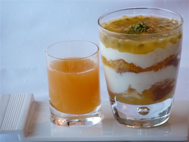 danach:Orangendessert, dazu frischem Orangensaft mit einem Schuss Orangenlikör