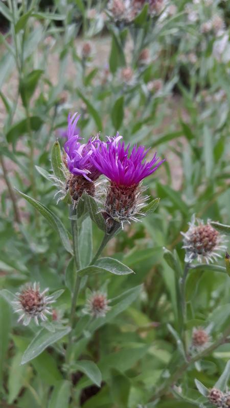 ... Es sind wohl zwei verschiedene Flockenblumen (Centaurea). Aber welche? Sie stehen nun in Vollblüte.