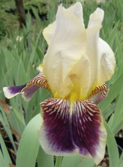 Hanit ist eine Arilbred, ca 51 cm hoch, in allen Teilen purpurZu Deiner gezeigten Iris habe ich nur zwei mögliche Entsprechungen gefunden:Bulwark, TB, Long 1944Lambent, TB Long 1948Die größte ist 100cm hoch und war hier im Garten die allererste hohe Bartiris in diesem Jahr. Auch I. germanica ist erst einen Tag später aufgeblüht. Ich habe sie vor mehreren Jahren unter dem Namen „Hanit“ erhalten Das ist eine Shahak-Züchtung von 1992, über die ich aber keinerlei weitere Informationen finden kann. Ich kann nicht einmal verifizieren, dass „Hanit“ in diesen Farben blüht. Vielleicht ist meine Iris ja auch „ein Kuckucksei“, das mir unter falschem Namen ins Beet gelegt wurde? Bei ganz genauem Hinsehen ist der gelbe Rand von einer sehr feinen roten Kante gesäumt.
