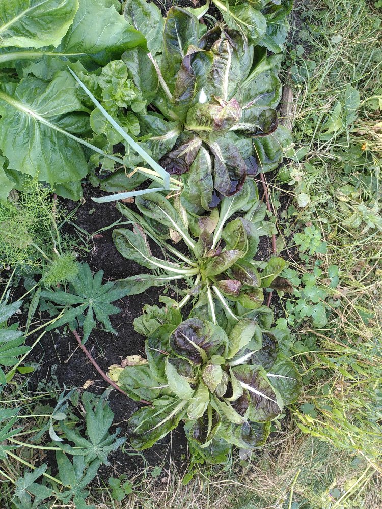 Speziell der Variegata Di Castelfranco schafft es auch im Beet, nach der Ernte mehrmals nochmal brauchbare Blätter, auch kleine Köpfe zu schieben, wenn man ihn früh genug ausgesät hat, er nicht geschossen ist und der Herbst wachstumsfreudig bleibt. Ausgegraben aus dem Beet ist das im Keller im Sand die Sorte, bei der neutreiben am leichtesten gelingt.
