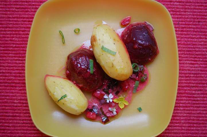.Hier gab es Rote Bete und Kartoffeln im Ofen gebacken.