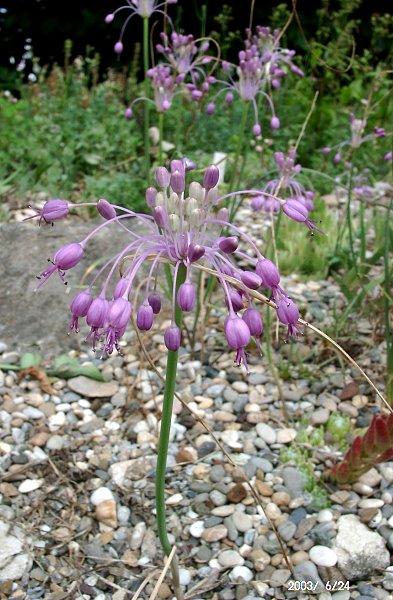 Ich weiß nicht, wie es heißt, vermute mal Allium cernuum. Es ist völlig unempfindlich gegen Trockenheit und wächst auch an sehr ungünstigen halbschattigen Stellen und blüht unverdrossen.