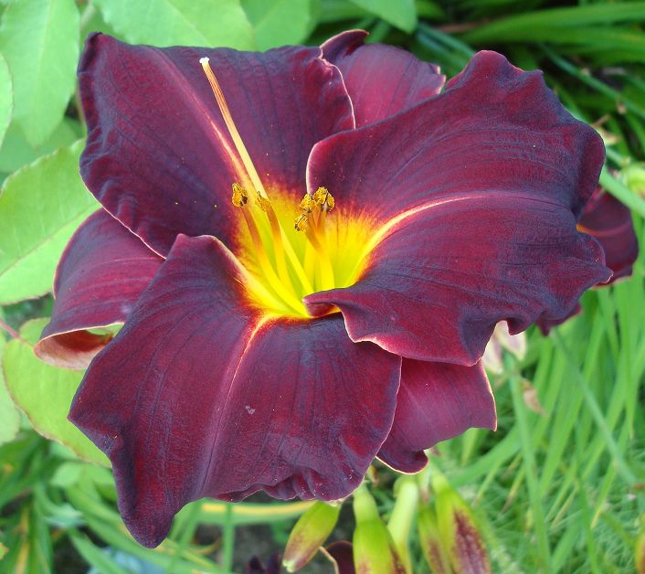 Warum fragst du nicht einfach bei ihm selbst nach? Wenn es der mit dem guten Ruf ist, den ich kenne, bekommst du totsicher eine Antwort!Ich finde es darüber hinaus nicht in Ordnung, von einem norddeutschen Tagliliengärtner zu sprechen, da gibt es einige mit gutem Ruf und so eine vage Aussage bringt gleich alle in den Verdacht, viele Fehllieferungen zu haben.Ich hab eine Rätselfrage - paßt hier, weil gerade so viel über 'purple' Sorten geschrieben wurde.Bestellt habe ich Stella in Purple (bei einem norddeutschen Taglilien-Gärtner, der eigentlich einen guten Ruf hat; bei der Bestellung waren so viele Fehllieferungen dabei, wie ich bisher noch nie irgendwo bekommen habe). Aufgeblüht ist nun das: Durchmesser 12 cm, Stängelhöhe 50 cm, paßt weder farblich noch von der Blütenform und -größe. Hat jemand eine Idee, was das für eine Sorte sein könnte?LGPS: das Foto ist farblich suboptimal, die Blüte ist in natura eher schwarzrot und leicht samtig.