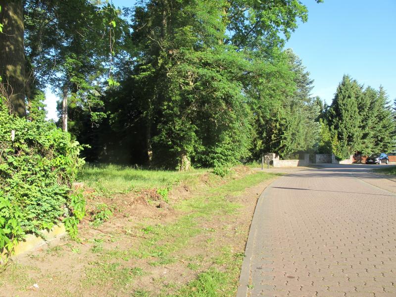 Die Einfahrt bleibt, wo sie ist: hinten an der Mauer, wo die Poller stehen.