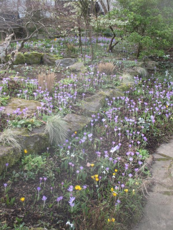 Bei mir haben die Elfenkrokusse auch erst richtig losgelegt, seit die Staudenbeete jedes Frühjahr mit einer Kompostschicht gemulcht werden. Ende des Winters liegen auf den Beeten viele gekeimte Krokussamen mit kurzen Wurzeln dran, die werden dann zugedeckt und wachsen los. Binnen weniger Jahre sieht das dann so aus wie auf dem Bild.