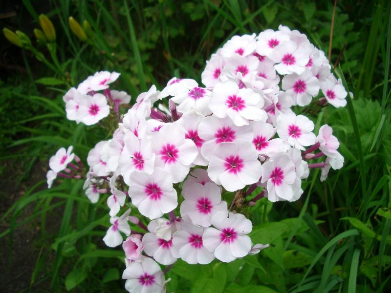 Mein eigener Phloxsämling ist einer der ersten Phloxe in diesem Sommer, die hier blühen. Im vergangenen Jahr war er leider sehr niedrig. Momentan erreicht er zwar auch nur knapp 70 cm Höhe, aber er darf bleiben, weil er die dunkle Ecke so schön ausleuchtet.