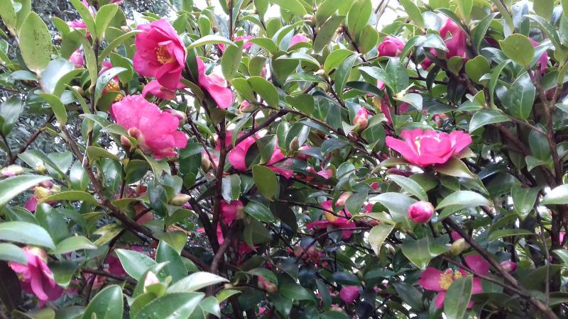 Die Kamelien freuen sich über das milde Wetter, weil sie noch draußen bleiben dürfen.