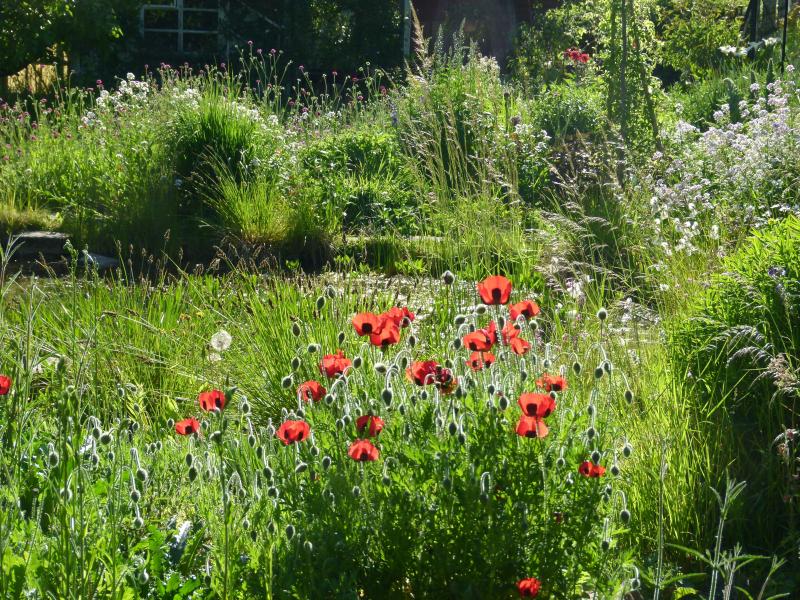 Campanula patula hat sich bisher nur am Teichrand richtig ansiedeln lassen.