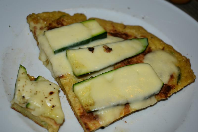 Ich hatte letztens als Vorspeise zum Mittagsmenü beim Hotel um die Ecke Zucchinicarpaccio. Das war sehr hübsch und überraschend schmackhaft obwohl es sehr mild gewürzt war. Mild gegarte Zuchinischeiben, etwas Öl, Schafkäse und geröstete Hanfbrösel, dekoriert mit Sprossen.