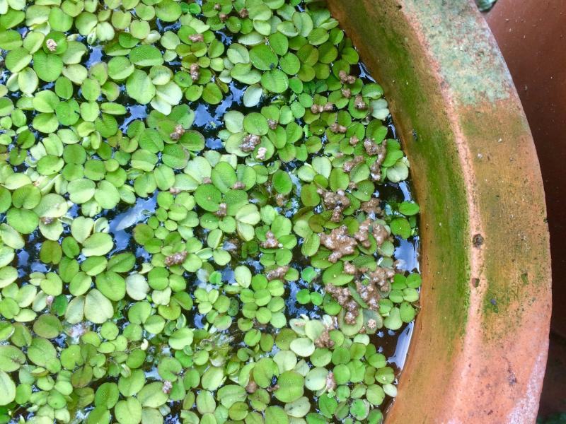 Ich habe dieses Jahr zum ersten Mal Schwimmpflanzen in wasserbefüllte Terracottagefäße gesetzt, um Insekten die gefahrlose Flüssigkeitsaufnahme zu ermöglichen. Das funktioniert auch sehr gut, aber ich habe jetzt eine interessante Beobachtung machen können. Auf einem Schwimmfarn sind konzentriert auf eine kleine Teilfläche eine Vielzahl brauner Bröckchen zu sehen. Ich wollte sie heruntersammeln und stellte fest, dass sie sich zwischen meinen Fingern zu einem braunen Schmier verreiben. Es sieht aus wie winzige Mengen von Fleischfresserausscheidungen. Da sich dort vor allem Wespen aufhalten, vermute ich da die Verursacher. Es wirkt nur so organisiert – so als hätten sie sich eine kleine Toilette eingerichtet. Weiß da jemand etwas darüber? Oder könnte speziell diese Pflanze so einladend für diese Verrichtung sein? In einem anderen Gefäß mit Wasserlinsen ist nämlich nichts davon zu sehen, obwohl ebenfalls häufig von Wespen frequentiert.
