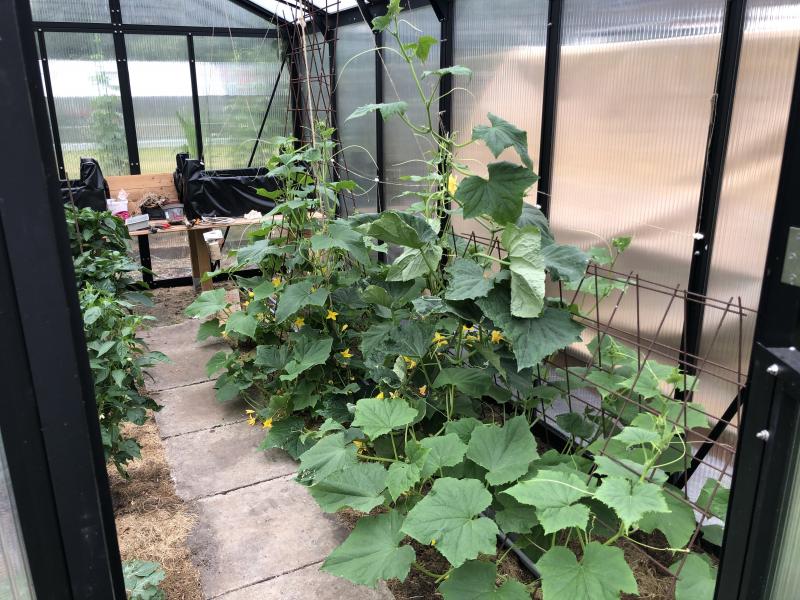 Mangels GWH habe ich sie dies Jahr an einem Spalier vor einer Holzwand stehen, was der Sorte Piccolino nicht behagte, sie wollte nicht wachsen und bekam gelbe Blätter während der Hitzetage. Nachdem wieder Platz im Hochbeet war, habe ich sie kurzerhand ausgegraben und dorthin umgepflanzt....sie trägt das 1. Gürkchen und die neuen Blätter sind grün :D