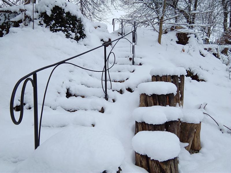 Malerische Winterszenen, foxy. Das Foto mit den zugeschneiten Treppenstufen und Baumstümpfen gefällt mir besonders gut.
