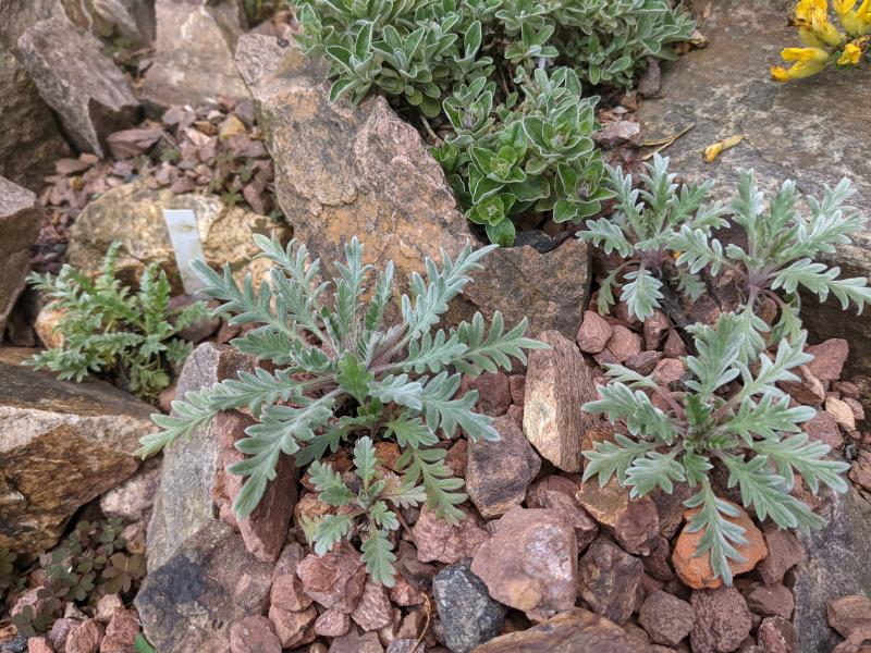 Die Phacelia sericea ist nicht monocarp... aber vermutlich hält sie nur wenige Jahre durch. Ich habe schnell ein Foto gemacht, wo Du am linken Rand (Etikett) die Pflanze erkennst, die ich im letzten Jahr mit Blüte gezeigt habe . Diese macht in diesem Jahr eine kleine Blühpause. Die anderen Pflanzen im Vordergrund habe ich erst vor wenigen Wochen dazu gepflanzt. Man kann auch die Unterschiede beim Laub erkennen. Manche sind stark gezähnt...andere wiederum nicht so sehr, dafür etwas silbrig behaart.