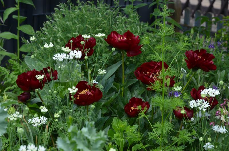 Schöne Rottöne finden sich auch bei P. officinalis 'Rubra' (der traditionellen Bauernpfingstrose) und natürlich bei P. tenuifolia.