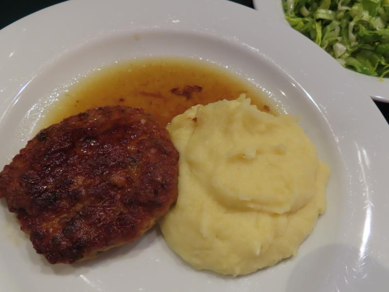 Hier gab es heute jedenfalls frischen Kabeljau paniert und gebacken, dazu Erdäpfvogerlsalat und gestern puristisch: faschierte Hühnerbutterschnitzl mit Erdäpflpetersilwurzelpürree und Endiviensalat.