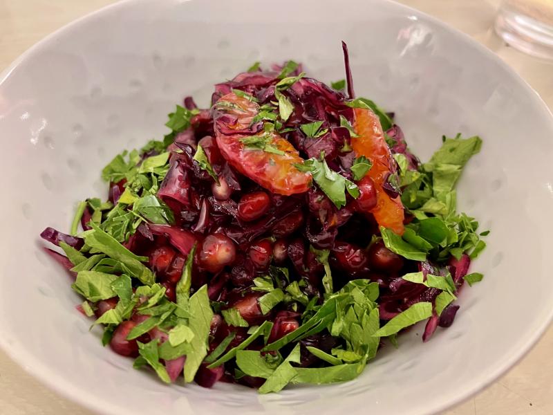 bei uns rotkohlsalat mit blutorange und granatapfelkernen…