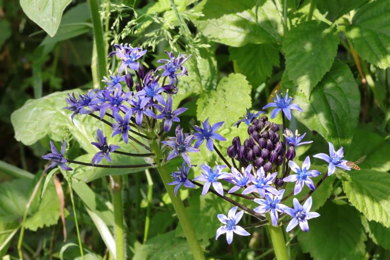 Scilla peruviana wollte bei mir im Topf jahrelang nicht blühen, des Hin- und Hertragens überdrüssig habe ich sie zur Strafe dann in die hinterste Gartenecke zwischen Gemüsebeeten und Komposthaufen gepflanzt. Dort überlebte sie wiederum viele Jahre, ohne zu blühen, aber jetzt plötzlich!