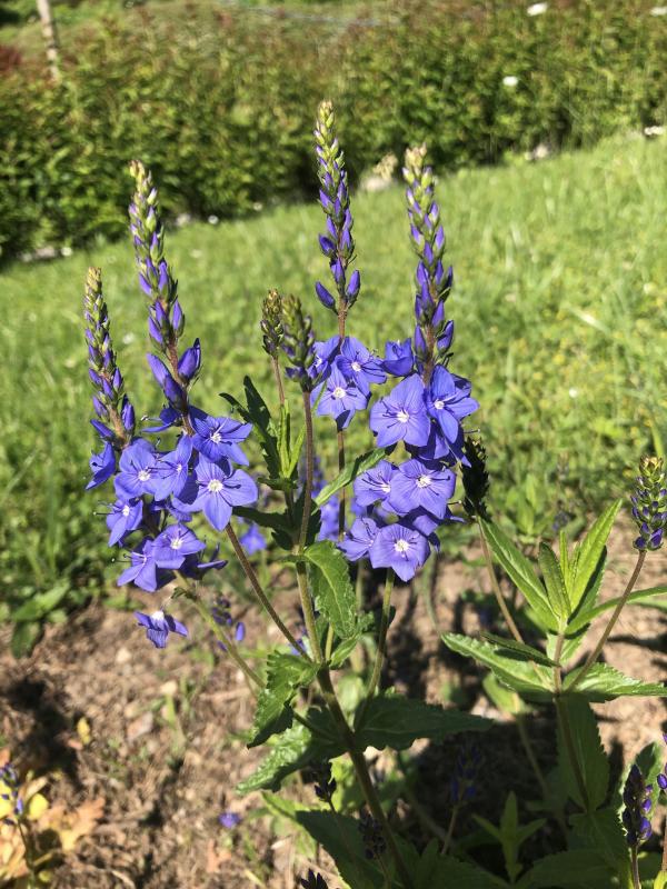 Das ist Veronica teucrium, evtl. die Sorte 'Knallblau' (der Name ist Programm ;) ).