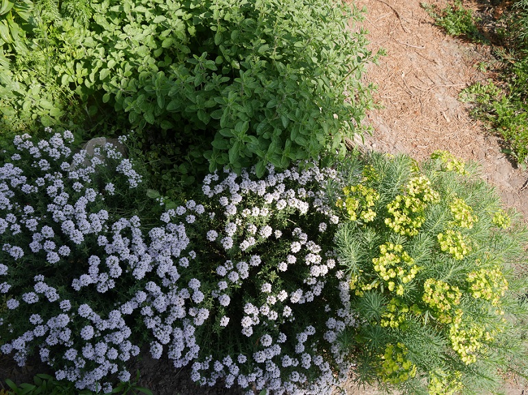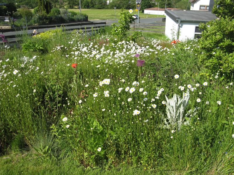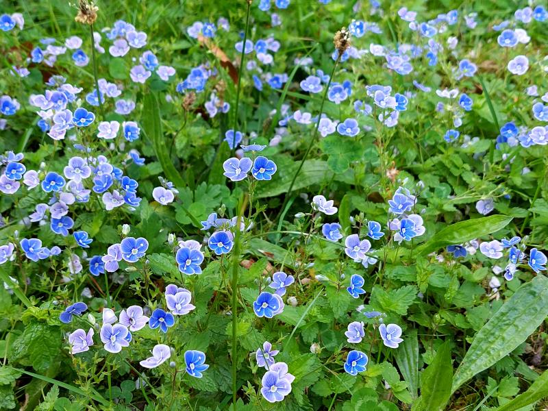 Hier blüht der Rittersporn auch noch nicht - für Blau richtet sich der Blick dafür zum Beispiel Richtung Grasnarbe - Gamanderehrenpreis.